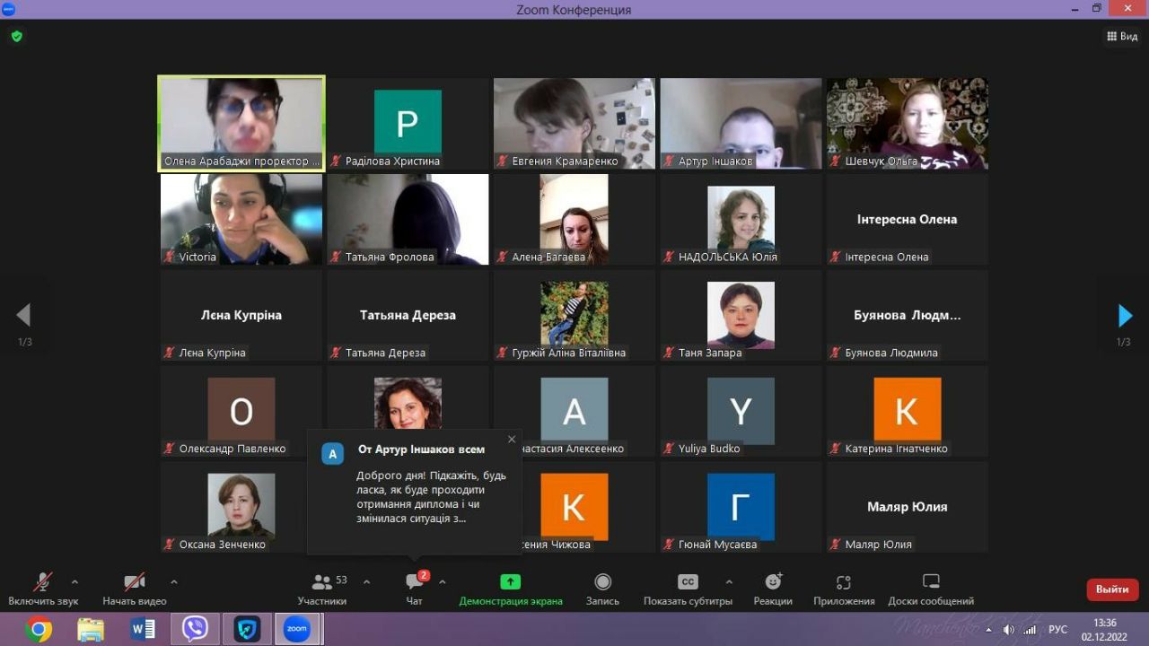 2 грудня 2022 року відбулась робоча нарада керівництва Університету зі здобувачами вищої освіти другого курсу магістратури заочної форми навчання.
