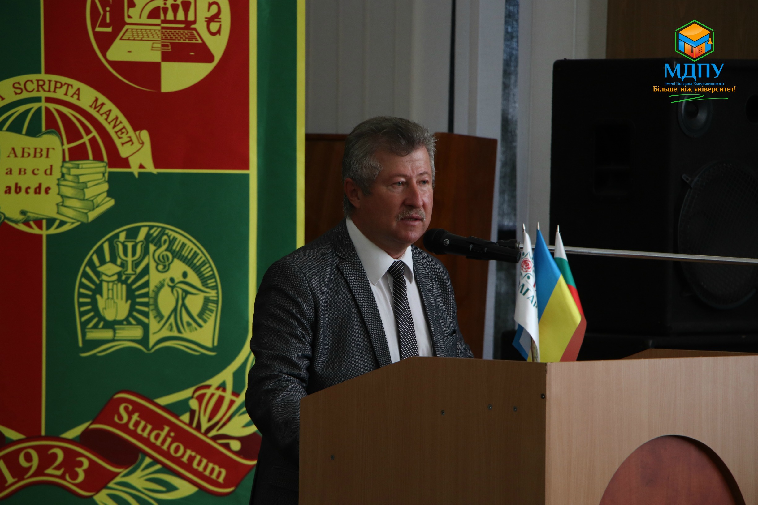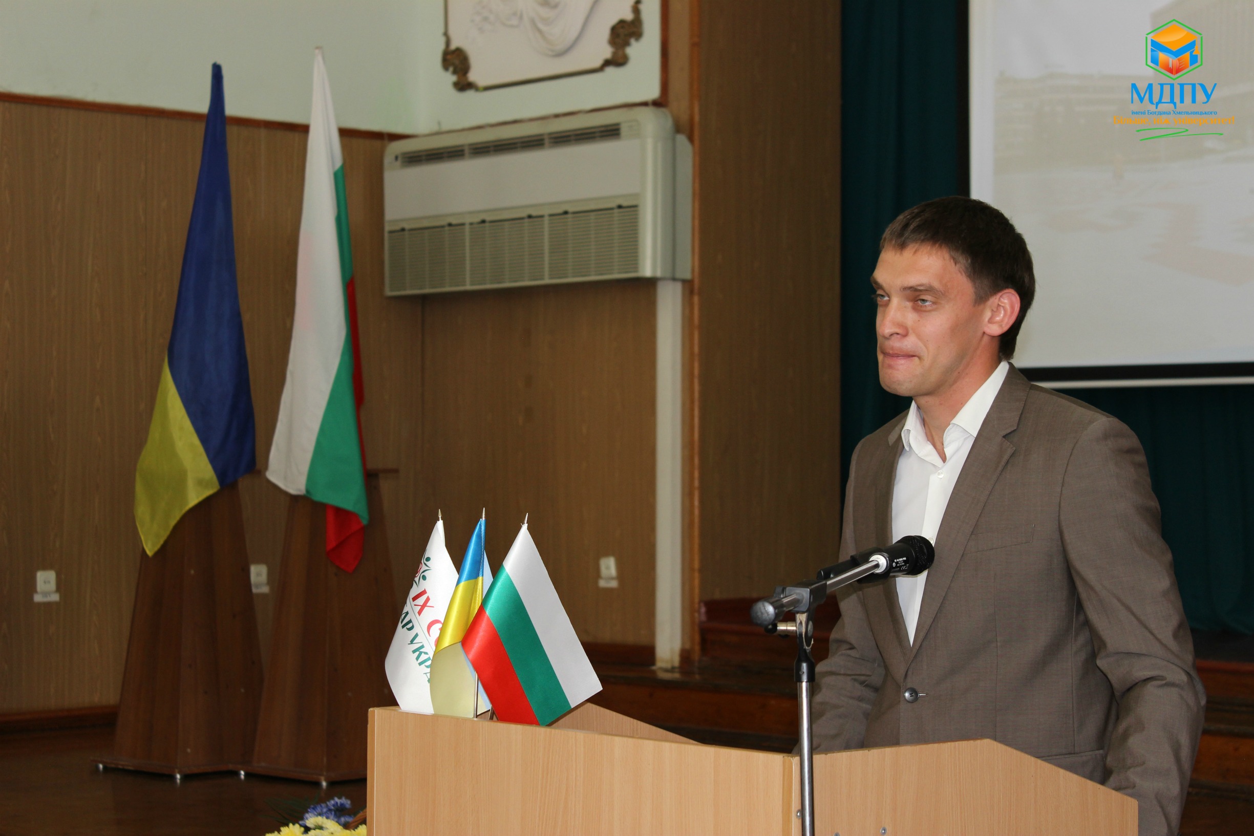 Учасників конференції привітав ректор університету Анатолій Солоненко: «З 2002 року в нашому університеті діє лекторат болгарської мови, літератури та культури. Усі лектори, які у нас працювали, були справжніми посланцями дружби. І зараз цю місію достойно виконує доктор Красиміра Колєва. Хочу підкреслити, що нині лекторат Мелітопольського державного педагогічного університету імені Богдана Хмельницького є єдиним в Україні. З 2008 року в МДПУ створено Центр болгаристики, який очолює доцент Сергій Пачев. Завдяки Центру університет став локомотивом українсько-болгарських зв’язків у м. Мелітополі. Сподіваємося, що і ХХ-та конференція теж пройде у нас»