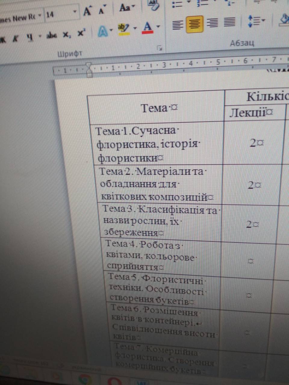 За структурою заняття було розділено на два тематичні блоки «Сучасна флористика. Історія флористики» і «Матеріали та обладнання для квітковаих композицій». Учасники прослухали дві повноцінні лекції і пройшли майстер-клас «Виготовлення осінньої квіткової композиції».