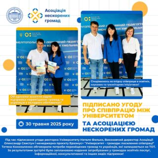 📑‼️30 травня 2025 року підписано угоду про співпрацю між Мелітопольським державним педагогічним університетом імені Богдана Хмельницького та Асоціацією нескорених громад.