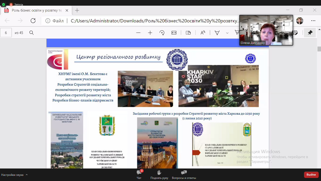 «Міжнародне співробітництво в освіті під час пандемії Covid 19”, спікер Світлана Ковальчук – виконавча директорка YES (Yalta European Strategy), що займається міжнародними проектами YES та Фонду Віктора Пінчука;