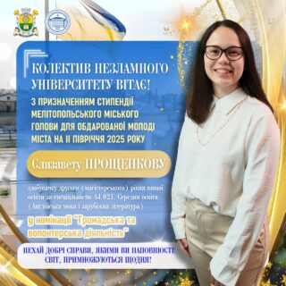 здобувачку вищої освіти факультету суспільно-гуманітарних наук та права, 💐‼️ із призначенням стипендії Мелітопольського міського голови для обдарованої молоді міста