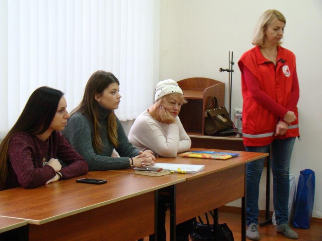 Що таке імунна система людини, в чому полягають основні функції імунітету, що таке вірус імунодефіциту людини, як вберегтись від СНІДу розповіла студентам медсестра Мелітопольського Червого Хреста Світлана Миколаївна Старигіна під час чергового заняття сертифікатної освітньої програми «Перша долікарська допомога».