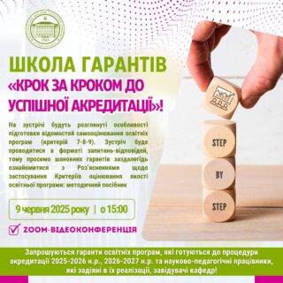 💻👨🏼🏫 Запрошуємо гарантів освітніх програм на черговий семінар ШКОЛИ ГАРАНТІВ «Підготовка відомостей самооцінювання. Критерії 7-8-9»!