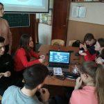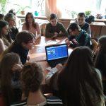 До навчання учнів долучилася волонтерська група з п’яти медіаграмотних студентів природничо-географічного факультету МДПУ імені Богдана Хмельницького (Діана Берегова, Анастасія Безгинська, Оксана Солодченко, София Ткаченко та Інесса Яковлєва), які виступили модераторами груп і організаторами спільної творчої діяльності учнів, створюючи креативний навчальний простір спілкування і взаємодії. Слід зазначити, що група волонтерів, зацікавлених у медіапедагогіці зростає з кожним новим тренінгом і сьогодні до нас долучилася Інесса Яковлєва – студентка спеціальності «Фізична культура», тренер з вільної боротьби, яка працює у дитячій спортивній школі).