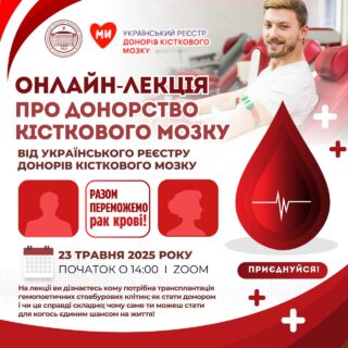 📅📌23 травня о 14:00 запрошуємо здобувачів освіти МДПУ імені Богдана Хмельницького на онлайн-лекцію про донорство кісткового мозку від Українського реєстру донорів кісткового мозку.