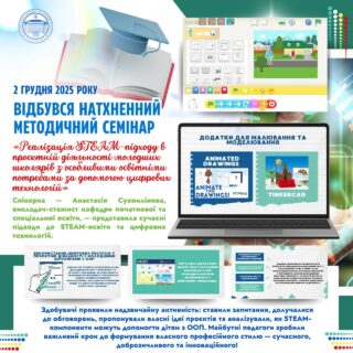 🚀💭 Здобувачі проявили надзвичайну активність: ставили запитання, долучалися до обговорень, пропонували власні ідеї проєктів та аналізували, як STEAM-компоненти можуть допомогти дітям з ООП.