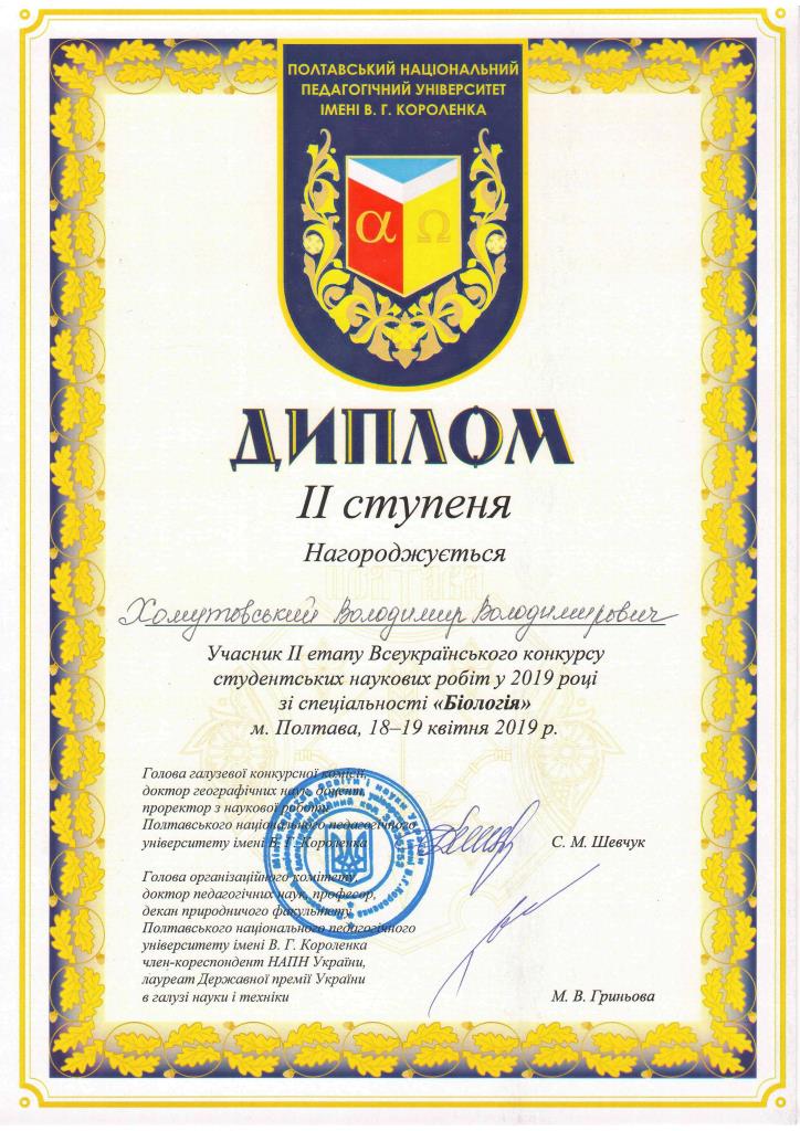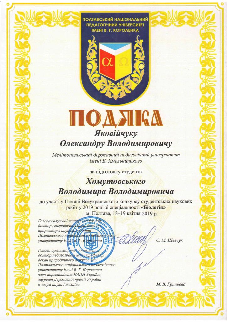 Серед них і студент хіміко-біологічного факультету МДПУ Володимир Хомутовський (науковий керівник – Яковійчук Олександр Володимирович).
