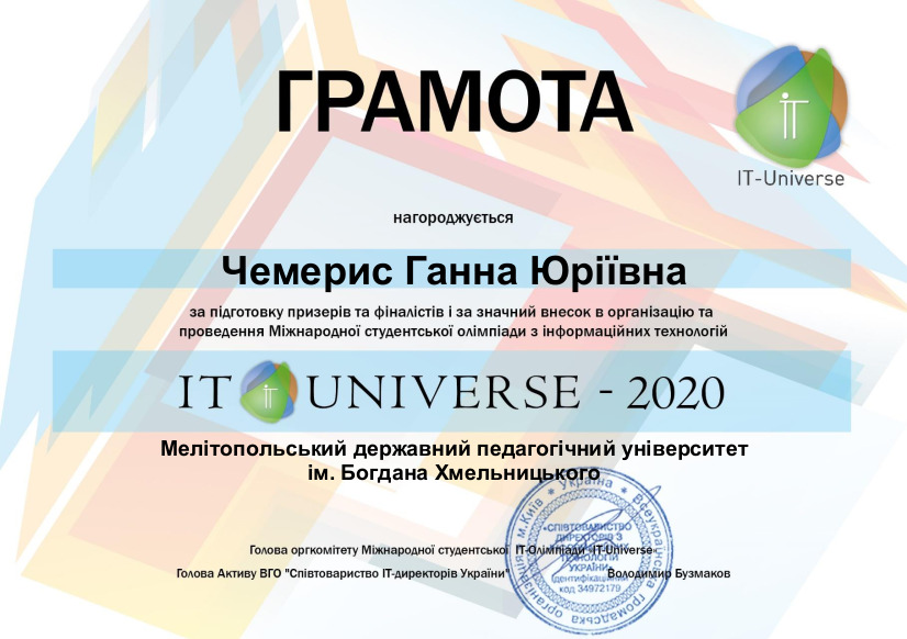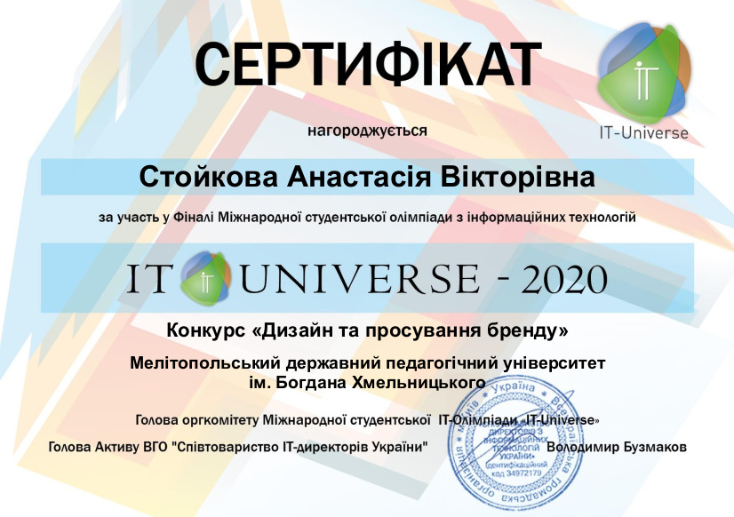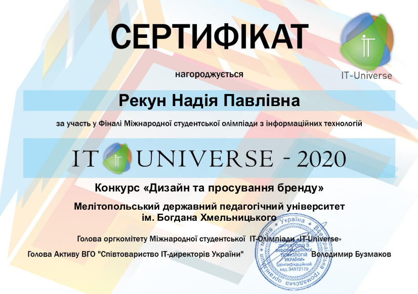 07 червня 2020 р. відбувся фінал Конкурсу «Дизайн та просування бренду», що проходив у рамках ювілейної Х Міжнародної студентської олімпіади в сфері інформаційних технологій «IT-Universe» (IT-Universe) – найбільшої ІТ-олімпіади на території СНГ.