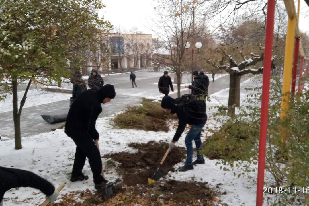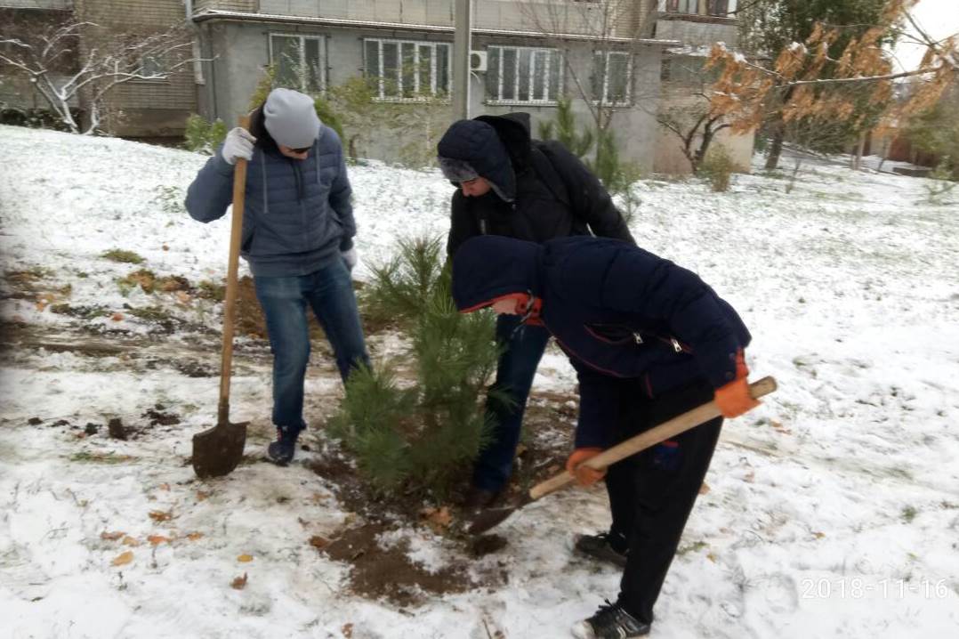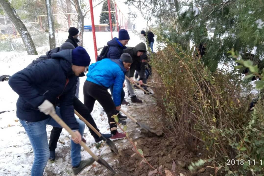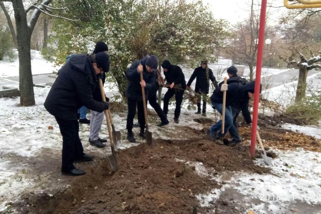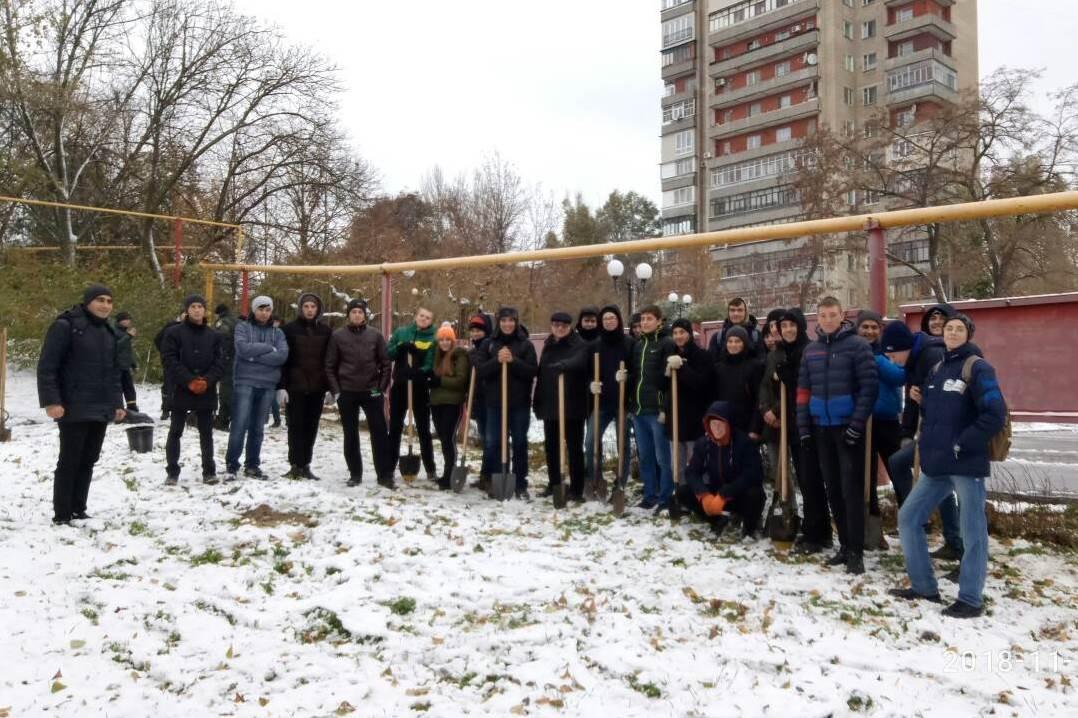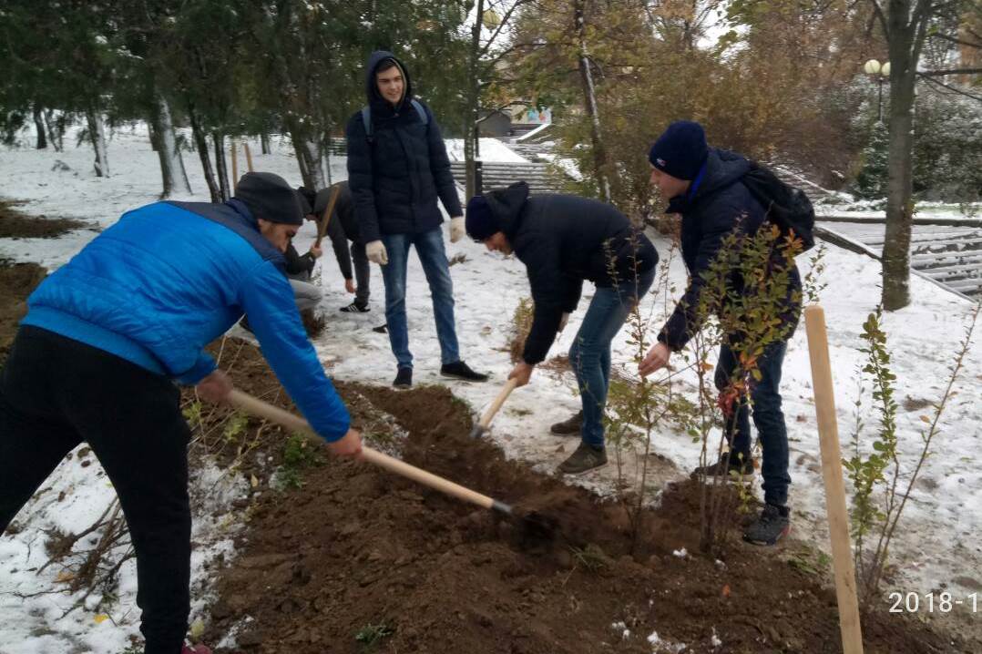 Завзяті хлопці факультету інформатики, математики та економіки, хіміко-біологічного та природничо-географічного факультетів разом з деканом факультету Павлом Бельчєвим і куратором з організаційно-виховної роботи зі студентською молоддю Ернестом Муртазієвим висадили на Алеї Слави сосни, кущі барбарису і горобини чорноплодної.