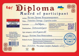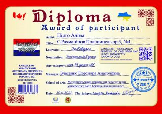 Студенти Навчально-наукового інституту соціально-педагогічної та мистецької освіти стали переможцями на Міжнародному Канадсько-Українському конкурсі-фестивалі дитячої та юнацької творчості «Toronto-Amsterdam 2021» у номінації «Інструментальний жанр».