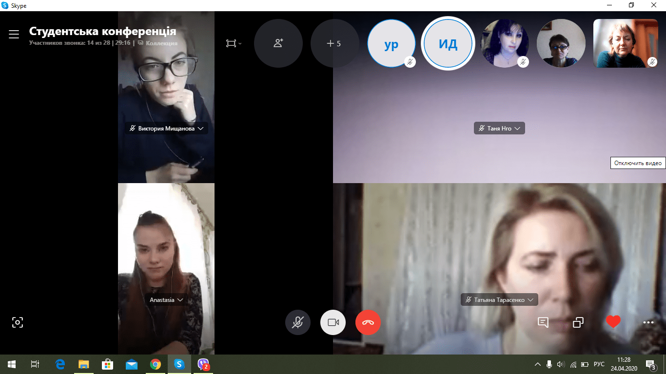 За традицією конференцію відкрила декан факультету Коноваленко Тетяна Василівна, яка привітала студентів зі святом, побажала всім учасникам плідної роботи конференції, цікавих і змістовних доповідей, яскравих вражень від отриманої наукової інформації. Першими на пленарному засіданні конференції вже декілька років поспіль виступають студенти-переможці Всеукраїнських студентських конкурсів наукових робіт. Конференція квітня 2020 не була виключенням. Перше слово для доповіді було надано студентці ІІ курсу магістратури Юлії Пчелі та студентці І курсу магістратури Вероніці Лазаренко, які посіли ІІ місце у Всеукраїнському конкурсі з філологічних досліджень, який проходив у Київському лінгвістичному університеті.