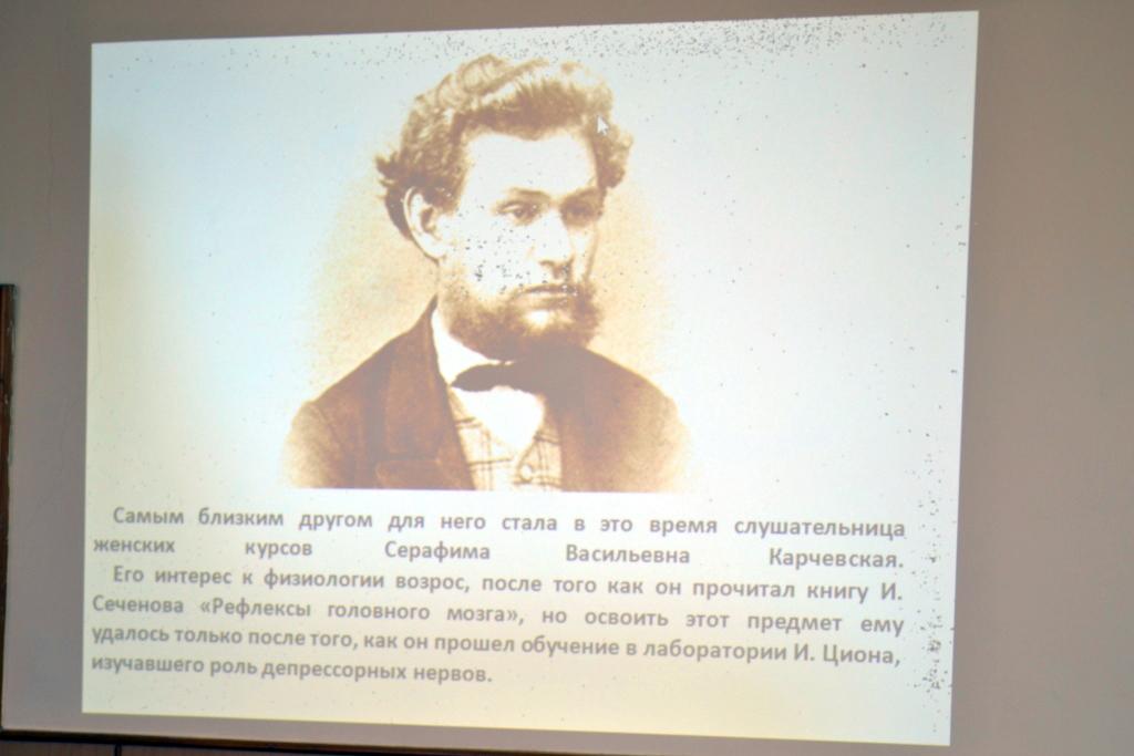 Більш детально про наукову діяльність Павлова І.П. доповіли студентки хіміко-біологічного факультета. Студентка 4 курсу Касаджи Юлія розповіла про розробку Павловим І.П. методики проведення хронічного експерименту. Юлія підкреслила неоціненний вклад науковця у фізіологію умовних рефлексів. Він створив новий напрямок експериментальної терапії, пристрасно боровся за об’єктивні методи дослідження. Йому належить велика заслуга створення найбільшої в світі фізіологічної школи.