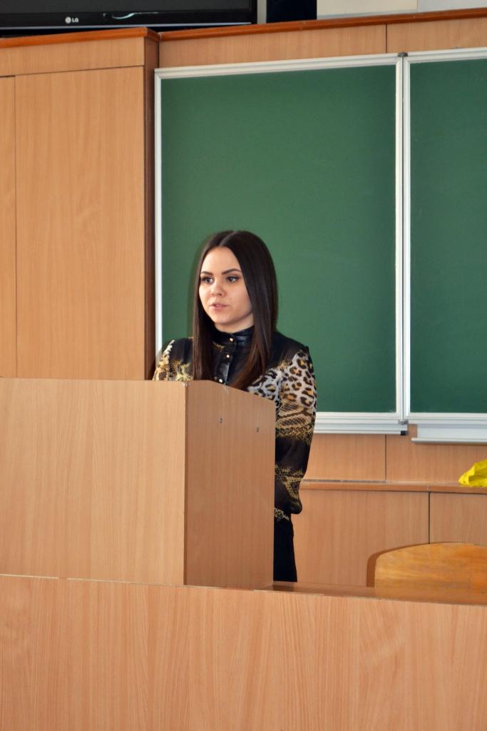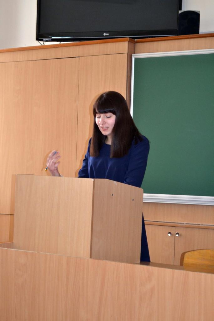 Студентка 4 курсу Тутова Ганна виступила з доповіддю, у якій розкрила наукову діяльність Івана Петровича про дві сигнальні системи дійсності, його дослідження у сфері сну та механізмів пам’яті.
