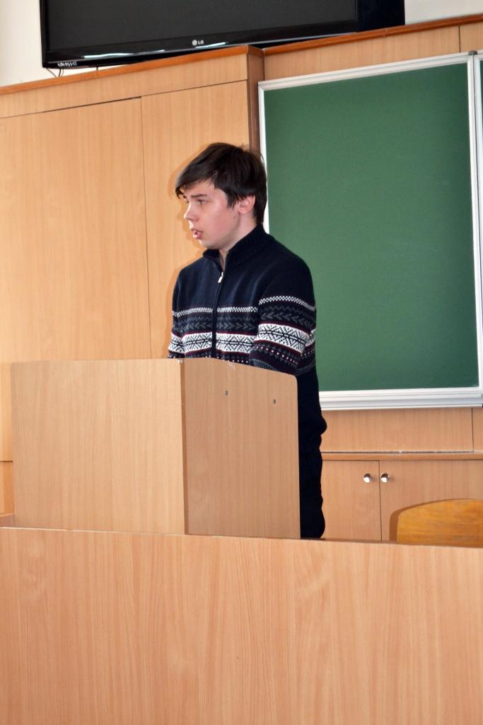 Хомутовський Володимир, студент 3 курсу, доповів про сучасні досягнення у сфері фізіології вищої нервової системи та досить з гумором підкреслив, що у майбутньому досить легко студентам буде навчатися, якщо досягнення науки увійдуть у сучасний побут. Наприклад, метод флеш-пам’яті.