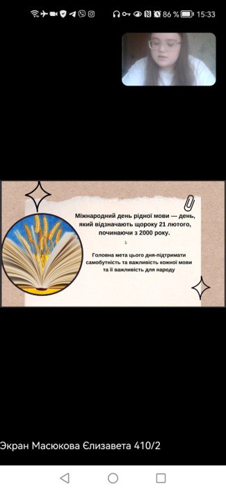 З нагоди свята представниками студентської ради філологічного факультету Голуб Оленою, Кравченко Катериною, Масюковою Єлизаветою та Смоляковою Валерією було проведено захід «Відчуй смак рідної мови» до Міжнародного дня рідної мови.