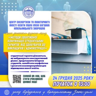 Центр експертизи та моніторингу якості освіти Мелітопольський державний педагогічний університет імені Богдана Хмельницького запрошує студентських гарантів на круглий стіл 💫🗣️ «Методи ефективної комунікації студентських гарантів: від здобувачів — до викладачів і адміністрації»