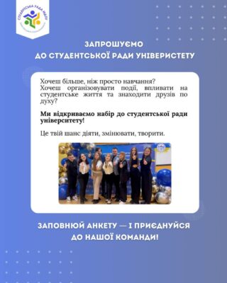 📋 Набір до студентської ради вже відкритий! Заповнюй анкету і приєднуйся до нашої команди.