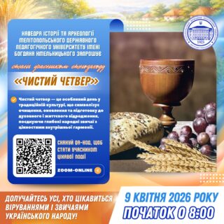 🕯 Під час заходу учасники матимуть можливість дізнатися про сакральний зміст Чистого четверга, традиційні обряди очищення, народні вірування, символіку дій та їх значення в українській культурі. Особливу увагу буде приділено етнографічним особливостям святкування в різних регіонах України.
