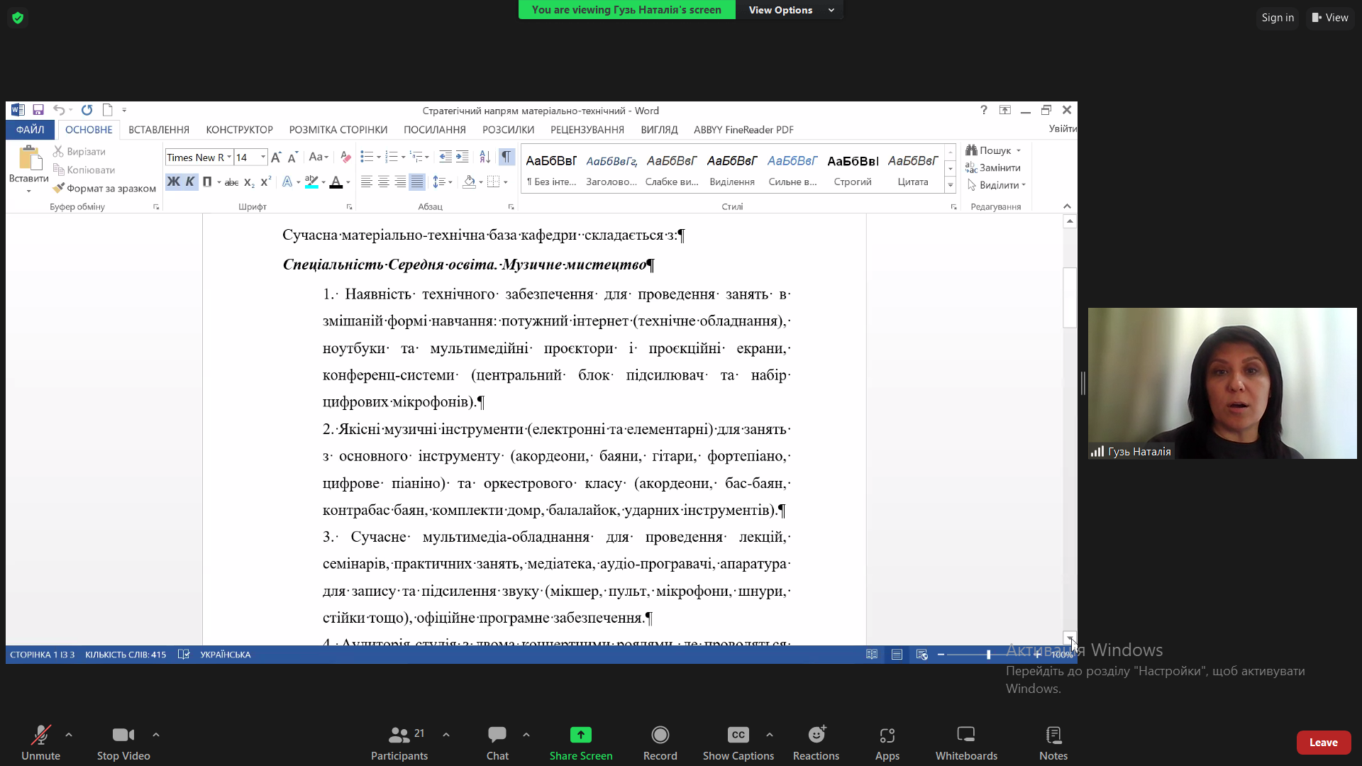 Проректор з науково-педагогічної роботи, зовнішніх зв’язків і стратегічного розвитку Олена Арабаджи представила програмний документ, у якому відображено місію, візію, цінності, функціональні напрями та стратегічні пріоритети вищого освітнього закладу. Підготовлений SWOT-аналіз дозволив під час стратегічного планування розглянути впливи, слабкості, можливості і загрози, які відображаються на діяльності Університету.