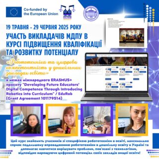🇪🇪🇪🇺Курс проводиться представниками Нарвського коледжу Тартуського Університету (Естонія) в рамках реалізації Робочого пакета 2 (Завдання 2.1.) міжнародного ERASMUS+ проєкту “Developing Future Educators’ Digital Competence Through Introducing Robotics into Curriculum” / EduRob (Grant Agreement 101179514).