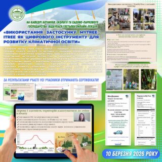 🌳🎓 10 березня 2026 року на базі кафедри ботаніки, екології та садово-паркового господарства Мелітопольського державного педагогічного університету імені Богдана Хмельницького відбулася гостьова онлайн-лекція «Використання застосунку MyTree–iTree як цифрового інструменту для розвитку кліматичної освіти», присвячена впровадженню сучасних цифрових рішень у сфері екологічної та кліматичної освіти.