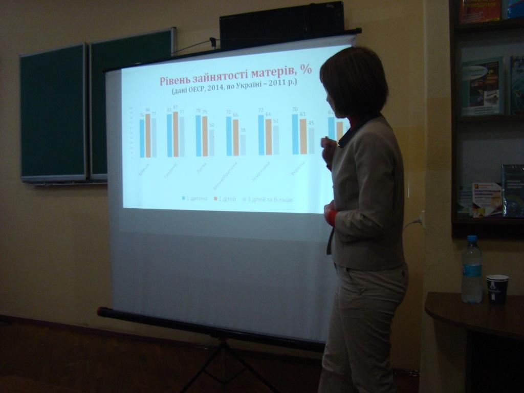 Під час зустрічі йшлося про ідеалізоване материнство; «звеличення» материнства та невидимості «жіночої роботи»; умови материнства в Україні; контраргументи щодо жіночої провини у демографічній кризі; материнське повсякдення: як (чи) можна виміряти репродуктивну працю; як материнство впливає на зайнятість жінок у різних країнах та рівень зайнятості матерів в Україні; розподільне батьківство: держава, сім’я, ринок (праці). Науковиця спиралася на результати власного дослідження.