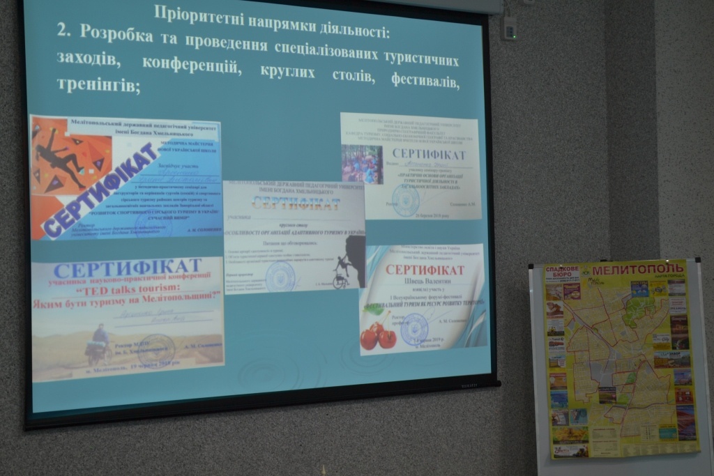 Завідуюча відділом охорони культурної спадщини та туризму комунального закладу «Районний центр культури» МРР ЗО Панасенко Ю.П. презентувала культурну спадщину Мелітопольського району, зупинившись детально на кожному туристичному об’єкті Мелітопольщини.