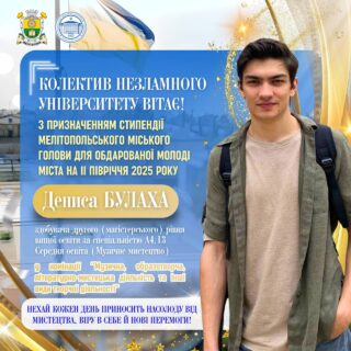 📝📌 Відповідно до розпорядження Мелітопольського міського голови від 14.10.2025 № 99-р «Про затвердження списку молоді, якій призначена стипендія Мелітопольського міського голови для обдарованої молоді міста», цей почесний статус став заслуженим визнанням таланту, натхнення та творчої праці Дениса.