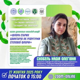 👩🏼🔬🇺🇦 Скобель Надії Олегівни — аспірантки кафедри ботаніки Херсонського державного університету, стажистки Варшавського університету, фахівчині у галузі збереження фітобіорізноманіття.