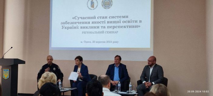 🎓💫20 вересня 2024 року в місті Одесі Голова Національного агентства забезпечення якості вищої освіти України Андрій Бутенко, заступники Голови Іван Назаров та Наталія Стукало, керівник секретаріату Національного агентства забезпечення якості вищої освіти Олександр Хименко провели четвертий регіональний семінар серії 📚🇺🇦«Cучасний стан системи забезпечення якості вищої освіти в Україні: виклики та перспективи».