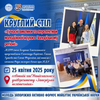 🏛️📚 25 квітня 2025 року в Освітньому хабі НУ «Запорізька політехніка» відбувся круглий стіл «Сучасні виклики та перспективи молодіжної науки в Запорізькому регіоні»!