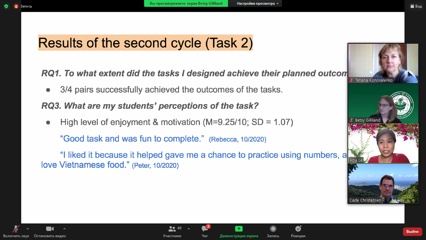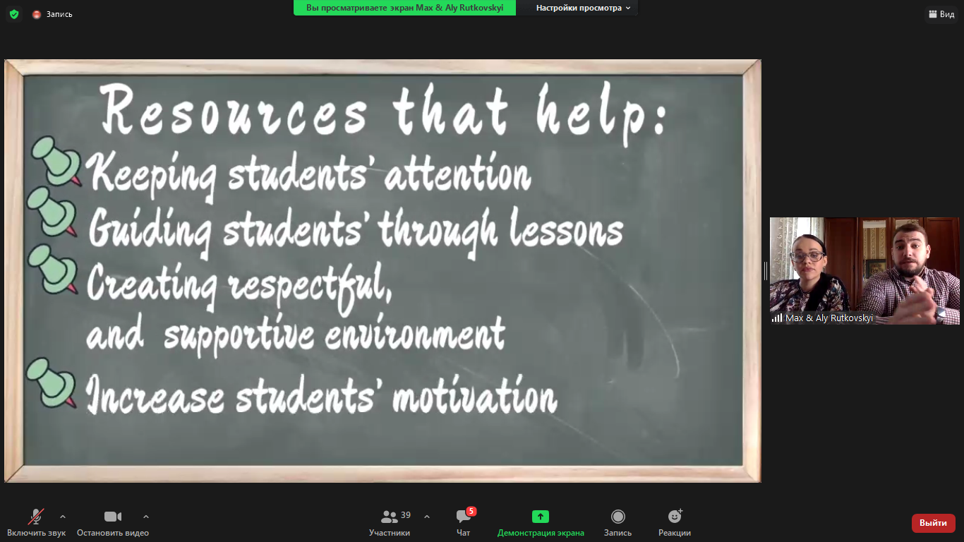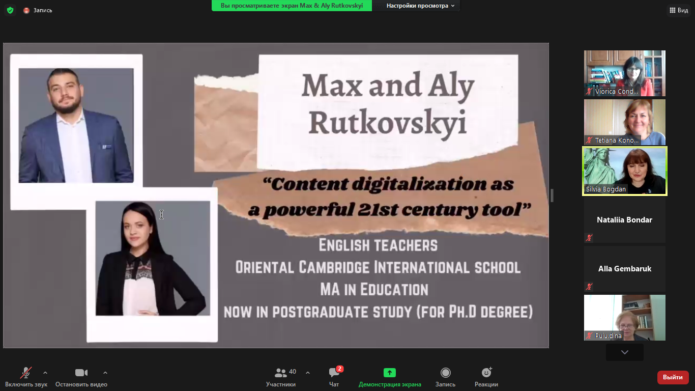 Альоні і Максиму Рутковським вдалось підготувати спільну доповідь «Content digitalization as a powerful 21st sentry teaching tool», у якій вдалось поєднати аспекти обох дисертаційних досліджень. Доповідачі створили яскраву і динамічну презентацію, яка знайшла позитивний відгук в аудиторії.