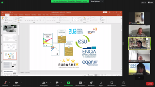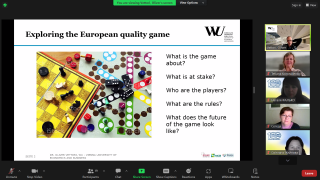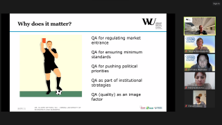 Програма зустрічі передбачала презентацію університету та відвідування воркшопів. У перший день зустрічі учасники мали змогу прослухати презентацію Олівера Ветторі «Європейська гра якості»: гравці, правила, цінність» та відвідати воркшоп Ірми Грдзелідзе «Системи інституційного забезпечення якості освіти у рамках європейського простору вищої освіти». Зокрема, було розглянуто такі поняття як: якість, забезпечення якості, контроль якості та культура якості, а також різні підходи, інструменти та механізми забезпечення якості вищої освіти. Було охарактеризовано складові внутрішнього та зовнішнього забезпечення якості освіти. Так, важливими складовими внутрішнього забезпечення якості є: формування внутрішньої системи забезпечення якості, активне залучення академічних працівників, здобувачів, випускників та роботодавців в освітні процеси, проведення систематичних досліджень та аналізу, забезпечення об’єктивності, доступності та публічності результатів аналізу та оцінки, децентралізація та посилення служб забезпечення якості на рівні факультету. Практичну реалізацію забезпечення якості освіти було розглянуто на прикладі Тбіліського державного університету.