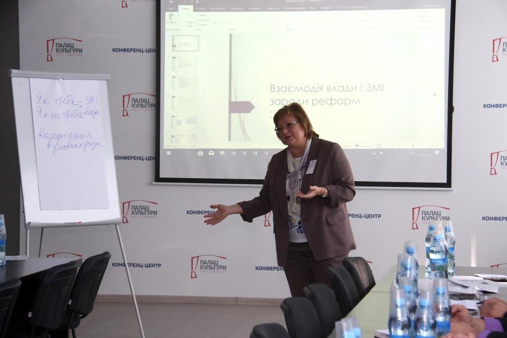 Тренинг провела Марія Лашкіна – кандидат наук з державного управління, доцент кафедри журналістики, реклами та зв’язків з громадськістю Інституту міжнародних відносин НАУ, помічник-консультант народного депутата України з питань комунікації та взаємодії зі ЗМІ, психолог. Упродовж тренінгу учасникам вдалося переглянути своє ставлення до роботи ЗМІ, поглянути на проблеми сучасного суспільства очима влади, представника ЗМІ та пересічного громадянина. Пошук спільного рішення у мішаних групах сприяв знаходженню компромісів, конструктивних підходів та глибшому розумінню ключових принципів взаємодії влади, медіа і громадськості.