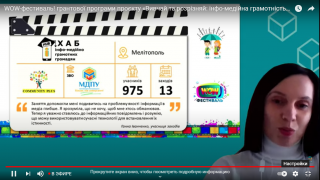 31 березня відбувся WOW Фестиваль грантової програми проєкту «Вивчай та розрізняй: інфо-медійна грамотність», участь у якому була представлена спільною командою від нашого університету і громадської організації «Ком’юніті плюс». У результаті грантової діяльності на базі МДПУ імені Богдана Хмельницького було створено Хаб інфомедійно-грамотних громадян. Проєкт виконувався IREX (Рада наукових досліджень та обмінів) за підтримки Посольств Великої Британії та США, у партнерстві з Міністерством освіти і науки України та Академією української преси.