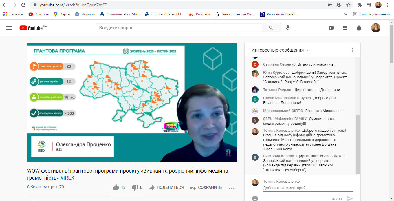 31 березня відбувся WOW Фестиваль грантової програми проєкту «Вивчай та розрізняй: інфо-медійна грамотність», участь у якому була представлена спільною командою від нашого університету і громадської організації «Ком’юніті плюс». У результаті грантової діяльності на базі МДПУ імені Богдана Хмельницького було створено Хаб інфомедійно-грамотних громадян. Проєкт виконувався IREX (Рада наукових досліджень та обмінів) за підтримки Посольств Великої Британії та США, у партнерстві з Міністерством освіти і науки України та Академією української преси.