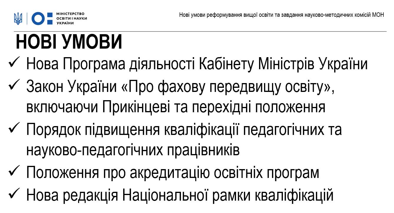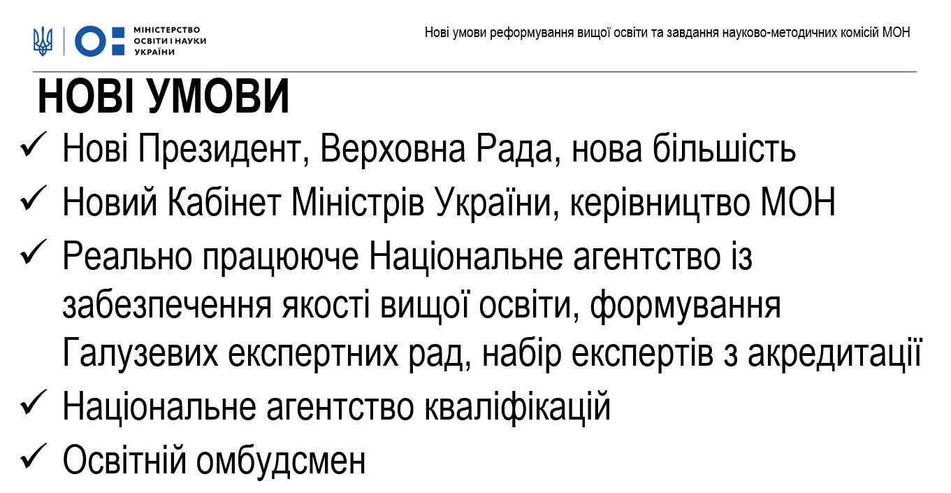 Серед нових умов реформи вищої освіти: