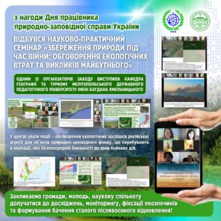 ✅📝«Вплив воєнних дій на природно-заповідний фонд України»(НПП кафедри географії та туризму МДПУ імені Богдана Хмельницького – к. геогр. н., доц., Гришко С.В., ст. викл. Непша О.В.).