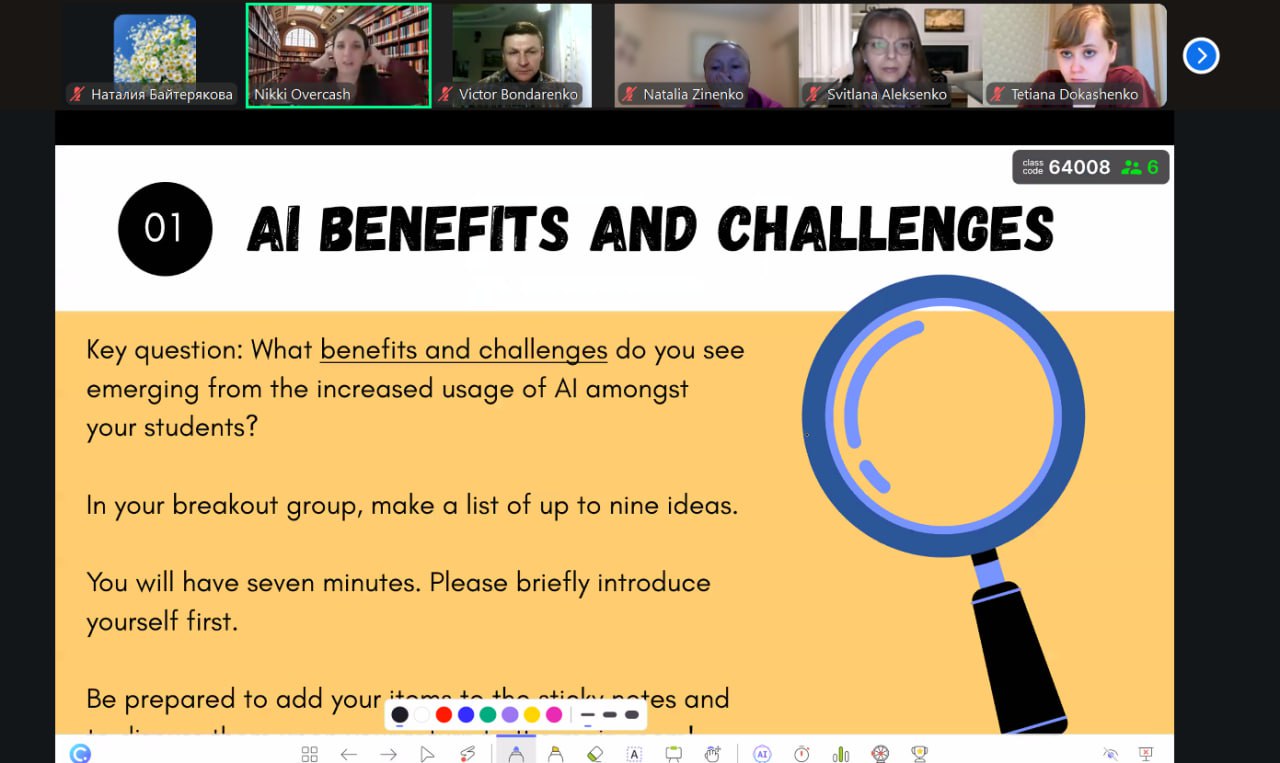 👩🏼💼👏🏻Спікеркою заходу була Ніккі Оверкеш, фахівчиняв галузі викладання англійської мови для носіїв інших мов TESOL, викладачка глобальних філій Аризонського університету та Британського Університету.