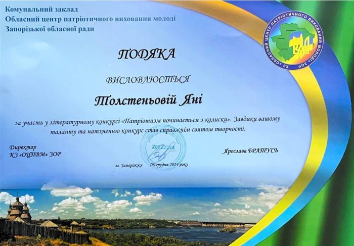 🏆💐6 грудня 2024 року відбулося урочисте відзначення учасників літературного конкурсу «Патріотизм починається з колиски», чиї роботи були відібрані членами поважного журі.