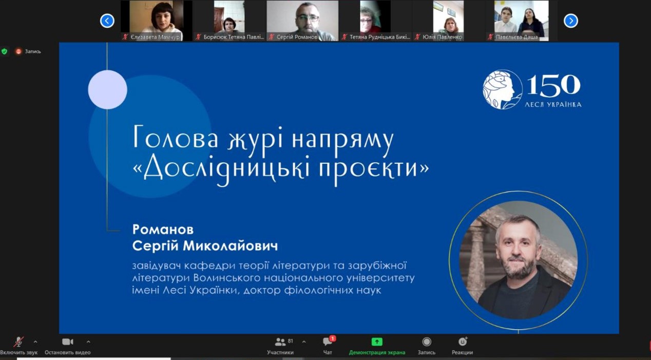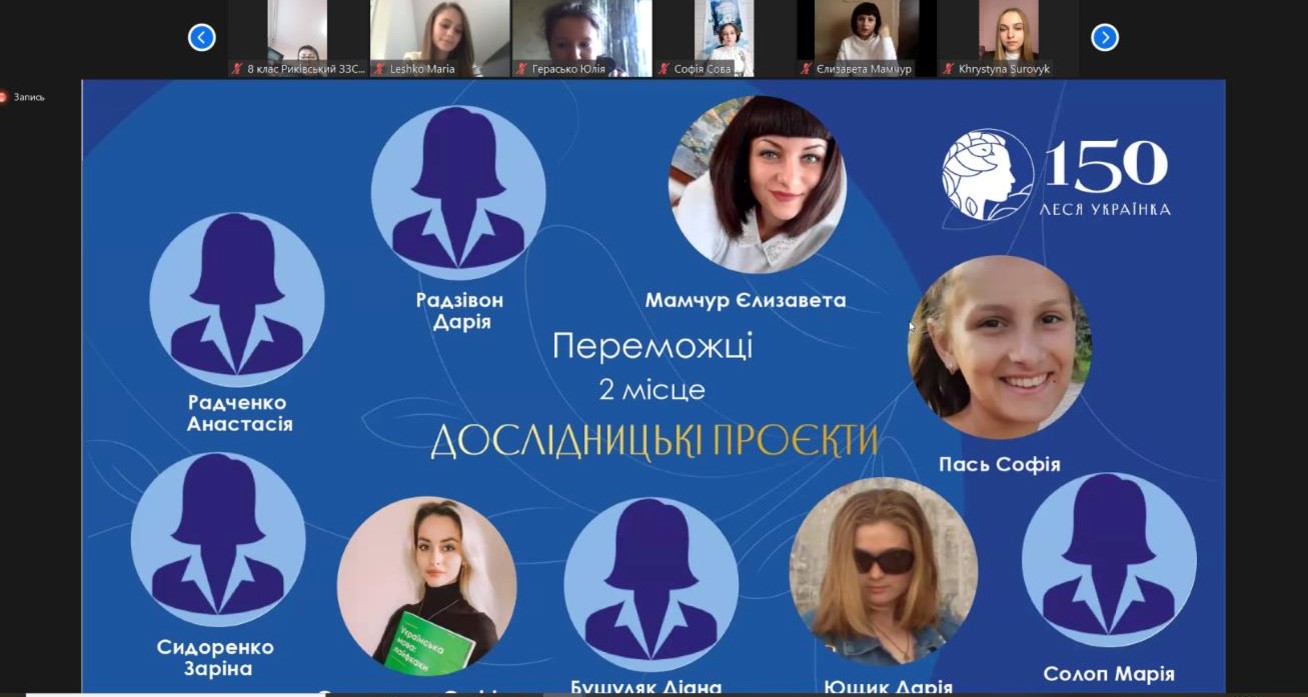 Участь у конкурсі взяли понад 200 здобувачів освіти віком до 21 року. Здобувачка ІІ курсу філологічного факультету Єлизавета Мамчур (науковий керівник – викладач кафедри української і зарубіжної літератури Наталія Мажара) здобула ІІ місце за напрямом «дослідницькі проєкти». Вітаємо Єлизавету та її наукового керівника і бажаємо подальших творчих та наукових успіхів!