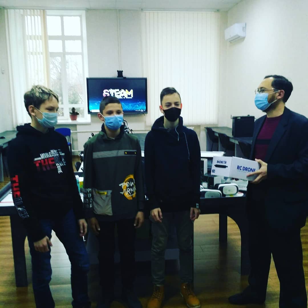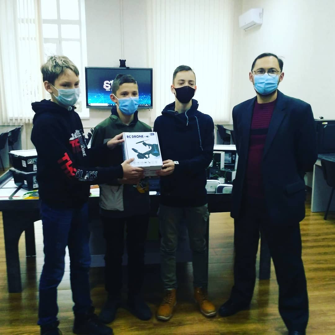 Сьогодні вітання отримали найактивніші і найталановитіші учні 8-В класу Мелітопольської загальноосвітньої школи І-ІІІ ступенів №4 Мелітопольської міської ради Запорізької області разом з викладачем інформатики Ченцовим Олександром Миколайовичем на базі STEAM-лабораторії. Завідувач кафедрою Осадчий Вячеслав Володимирович урочисто вручив юним інформатикам новесенький квадрокоптер.