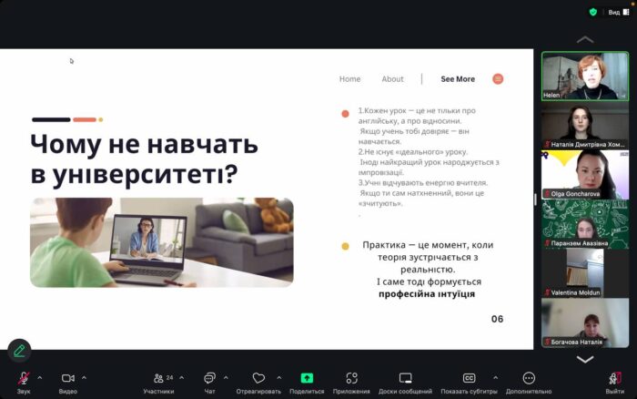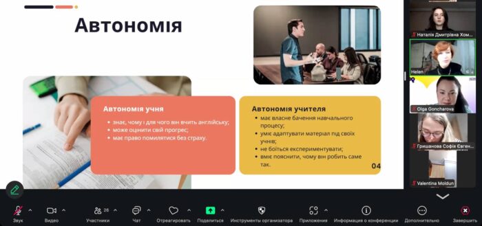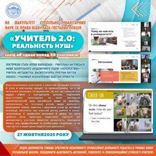 ✅🚀 Калієвська Олена ознайомила участників з поняттям автономії вчителя й учня в освітньому процесі та проаналізувала, чи є ця автономія реальним інструментом, чи все ще залишається радше міфом у сьогоднішніх школах, поділилася практичними прикладами, як може виглядати компетентнісний урок англійської мови на практиці, наголосивши на інтеграції різних видів діяльності, формуванні м’яких навичок і залученні учнів до активної взаємодії, розповіла про власний досвід роботи в школі, зазначивши ті професійні висновки й уроки, які вона зробила роки практики, окреслила стратегії, які допомагають учителю зберігати ресурсність, знаходити баланс між професійними та особистими потребами та не «вигоріти» в перші роки педагогічної діяльності.