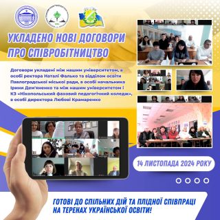 ✅🏛️ вiддiлом освiти Павлоградської міської ради, в особi начальника Дем’яненко Iрини Вiкторiвни, а також з