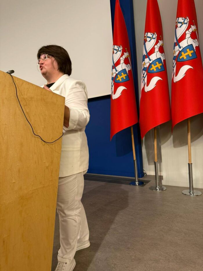 👩🏼🎓🇺🇦 Маргарита Воровка, професорка Мелітопольського державного педагогічного університету імені Богдана Хмельницького, у стінах Литовського Сейму, представила доповідь «Цивільні полонені: між правовою фікцією і воєнною реальністю».