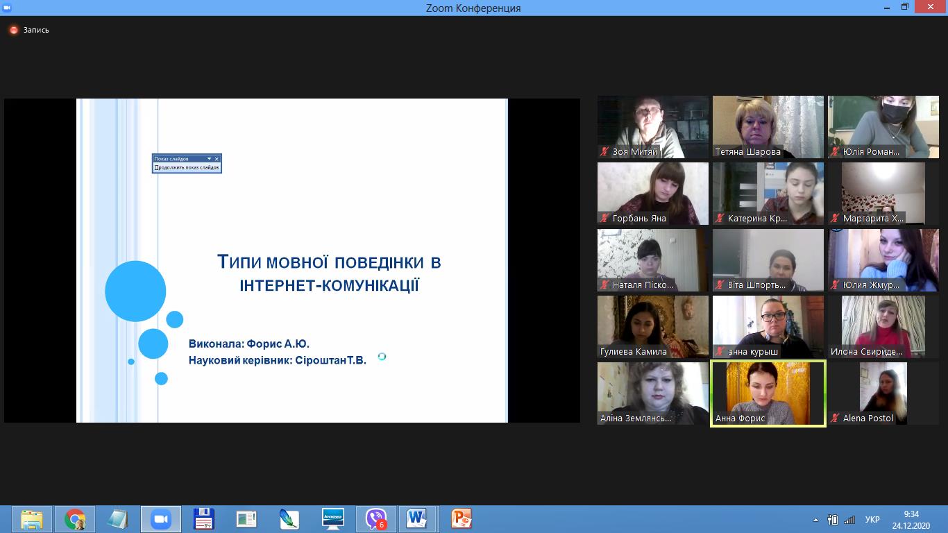 Захист магістерських робіт відбувався на платформі ZOOM. Під час проголошення доповідей були представлені презентації, які демонструвались здобувачами.