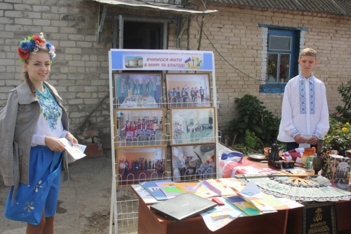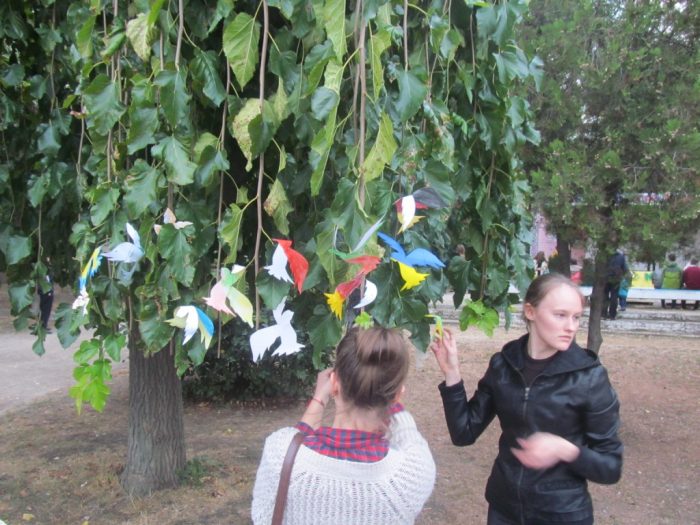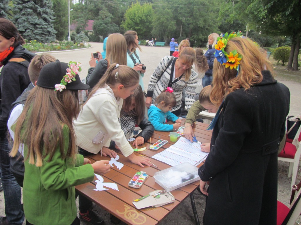 Присутні мали змогу ознайомитися з виставкою рушників Заслуженого майстра народної творчості Н.М. Денисюк і подивитися малюнки юних мелітопольців на тему миру і взаєморозуміння.