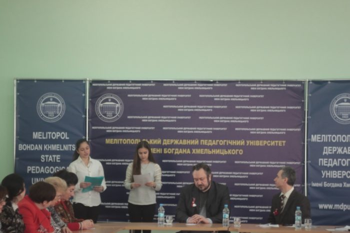 Відкриваючи захід, гостей привітав ректор університету, професор Молодиченко Валентин Вікторович, який відзначив роль університету у формуванні культурно-освітнього простору міста Мелітополя та регіону. У презентації Валентин Вікторович відзначив наукові монографії, міжнародні науково-практичні конференції, які щорічно проводяться на базі університету, акцентував увагу на необхідності виховання патріотизму і толерантності у студентської молоді.