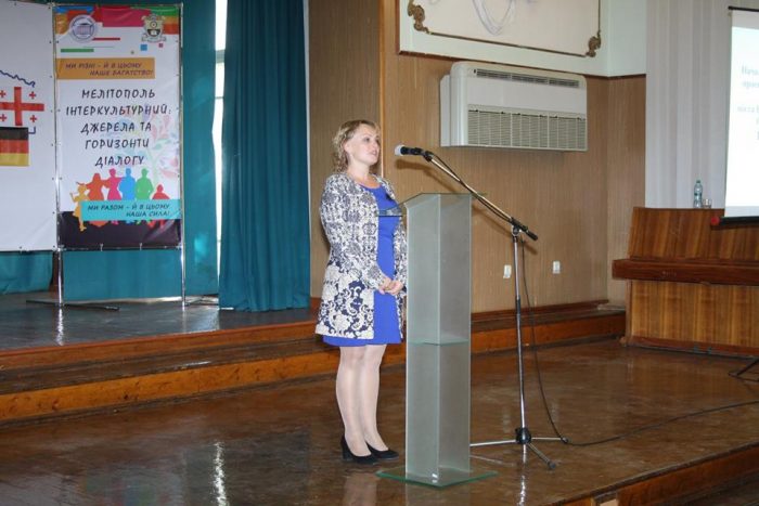 Виконуючий обов’язки секретаря міської ради Сергій Мінько привітав присутніх і відмітив, що досвід Мелітополя підтримки міжкультурних відносин сьогодні активно переймають інші міста. Саулє Ільїних – координатор Центру розвитку «Демократія через культуру» зазначила, що керівництво міста Мелітополя з самого початку участі в проекті ЄС проявляло свою зацікавленість і висловила сподівання, що співпраця в цьому напрямку буде продовжено. Представник Міністерства культури України, директор центру розвитку «Демократія через культуру» Олександр Буценко розповів, що в Білорусії найближчим часом буде виданий методичний посібник з розвитку міст, в якому одним з прикладів міжкультурних відносин є Мелітополь.